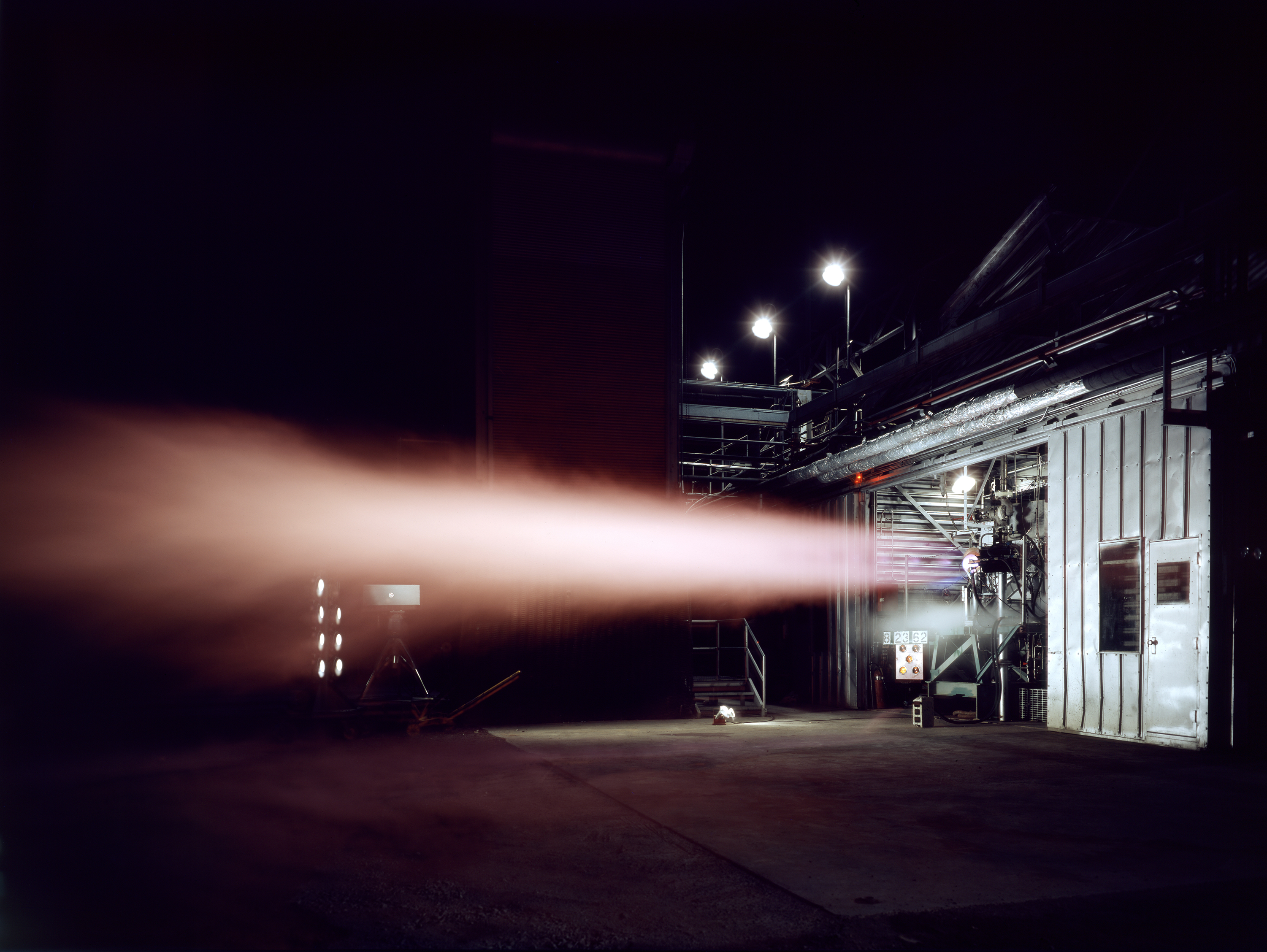 J Site's J-1 test stand could fire gaseous hydrogen rocket engines with up to 28,000 pounds of thrust (1962).