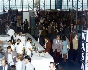 A reception in the hangar for attendees of the 1973 Lewis Inspection.