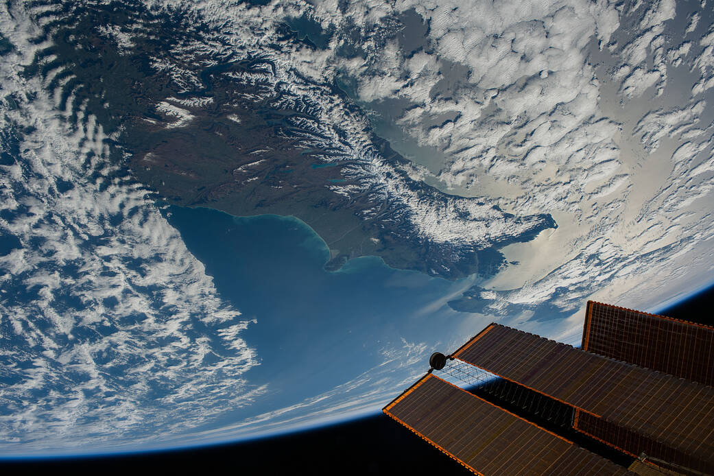 Expedition 69 Flight Engineer Jasmin Moghbeli captured this image of New Zealand, dotted by white clouds, on Sept. 12, 2023, as the International Space Station orbited 230 miles above the island nation.
