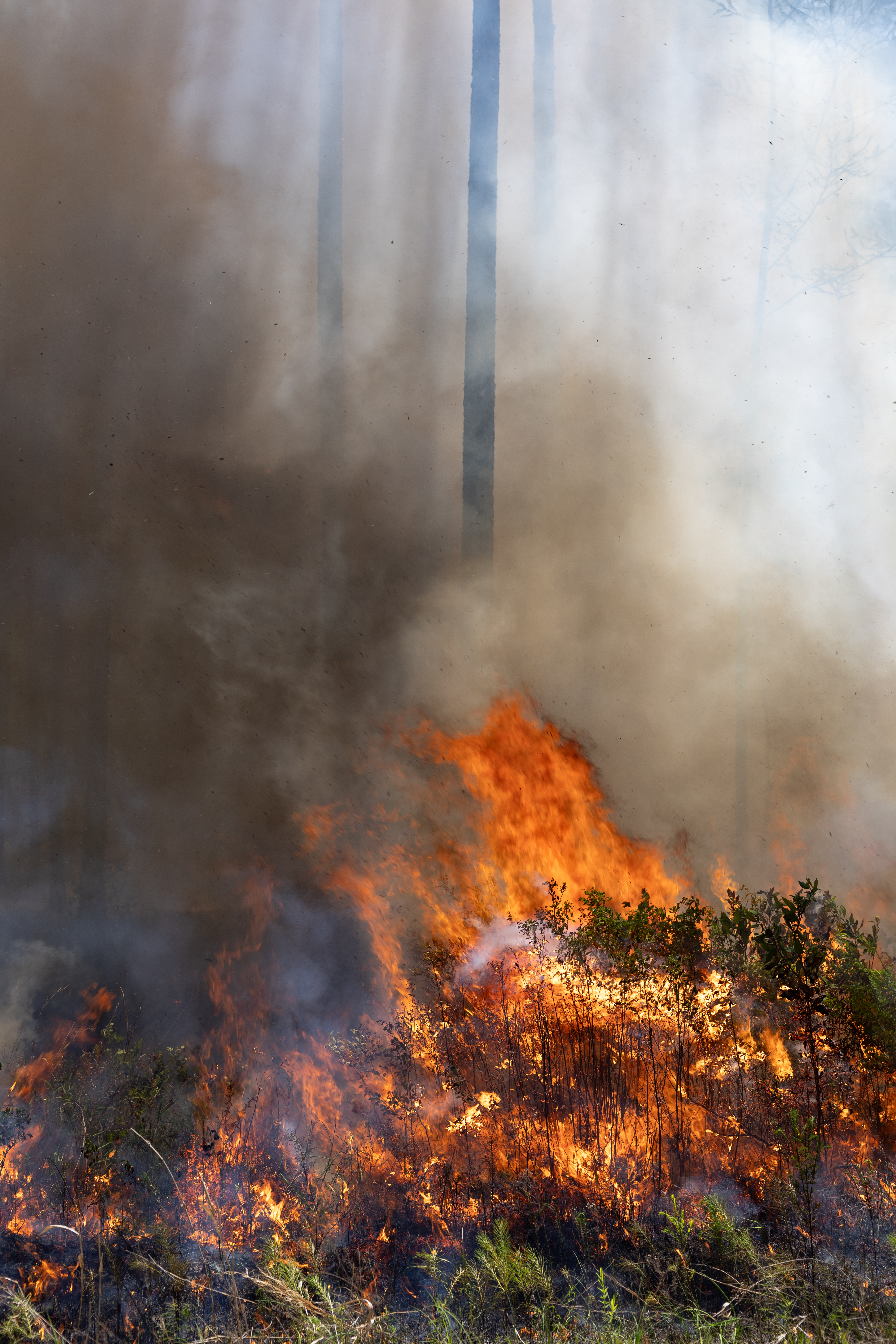 Fire consumes low-level brush during the 2025 NASA FireSense research campaign, centered around prescribed burn operations at Fort Stewart-Hunter Army Airfield in Georgia. These prescribed burns are ecologically necessary for the plants and animals in the longleaf pine ecosystem, and reduce fuels that could be accidentally ignited due to lighting strikes or military training operations. FireSense, the Department of Defense, and their partners use prescribed burns such as this one to develop and test tools and technology to make wildland fire management safer and more effective.