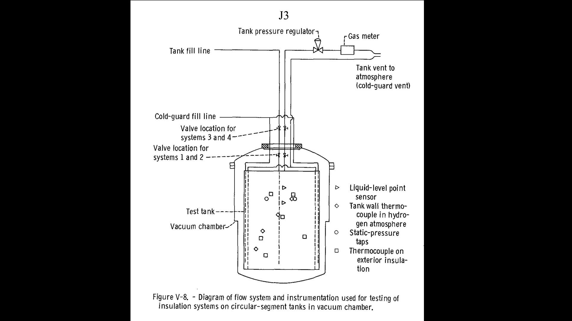 Diagram of the J-3 vacuum chamber, flow system, and instrumenation.