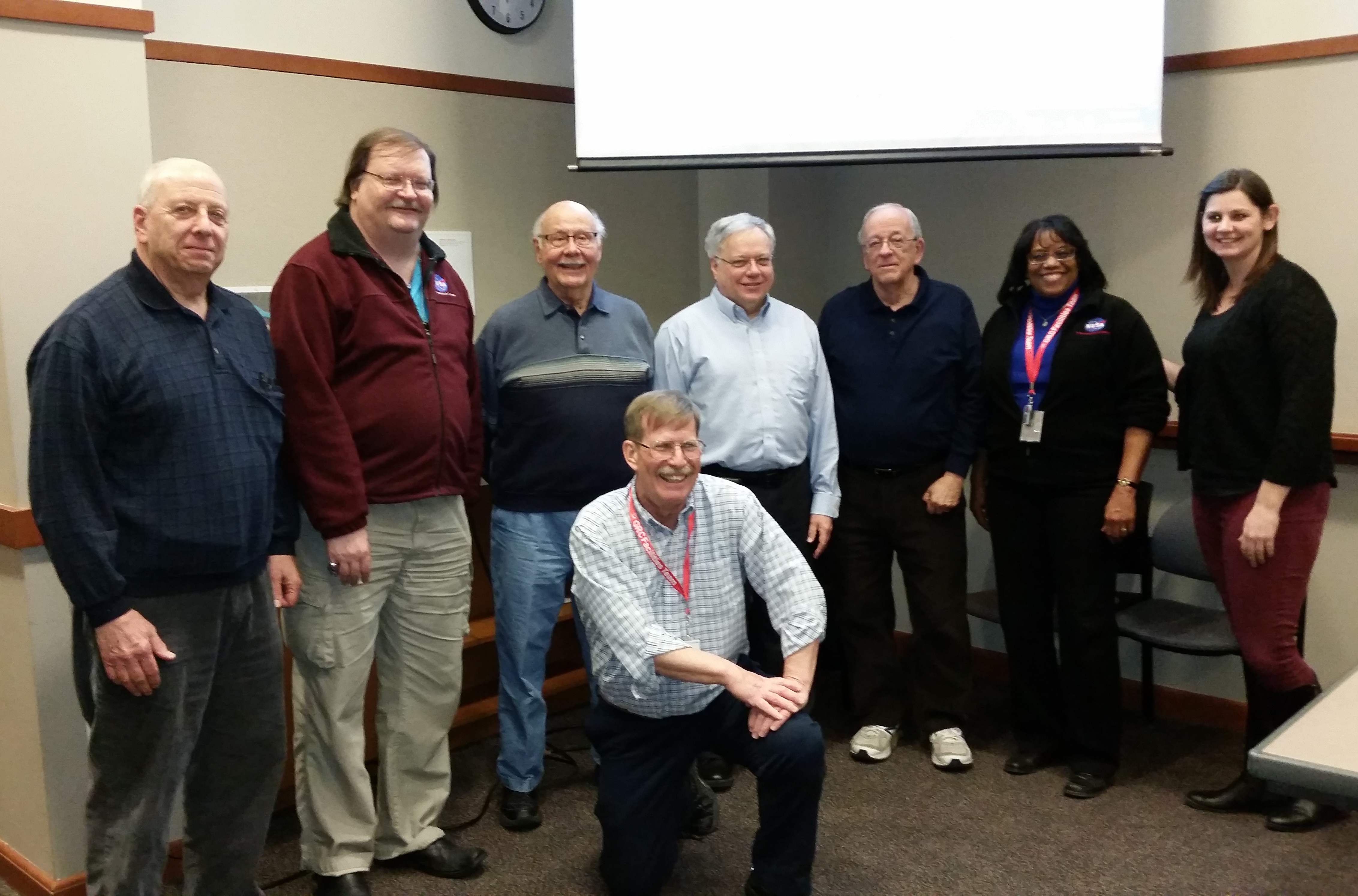 Members of Facilities Division and retirees at public meeting to discuss demolition of the Rocket lab (2016).