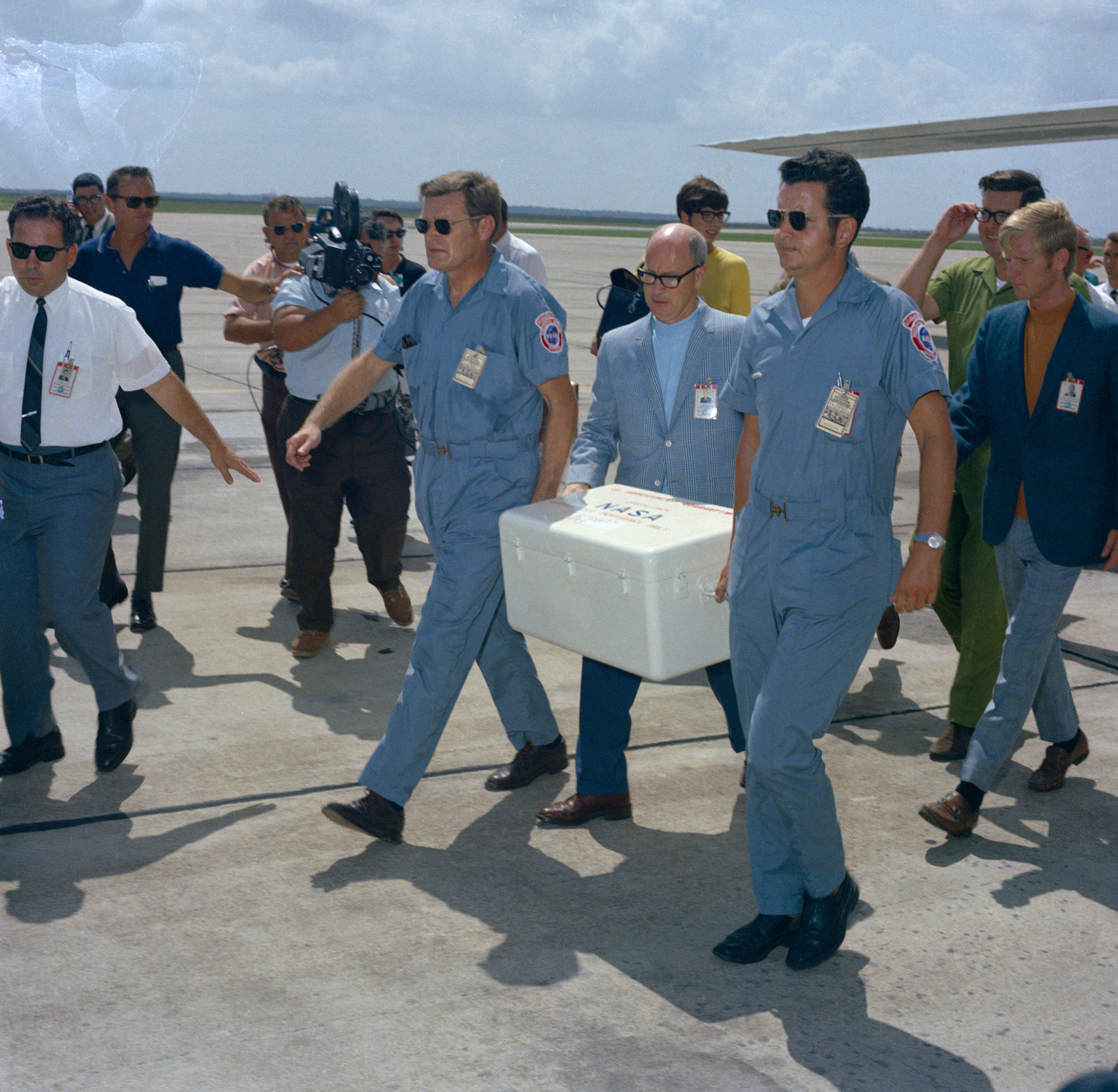 Arrival of Apollo 11 Lunar Samples at EAFB by C-141 Starlifter and at the Bldg. 37 Lunar Receiving Laboratory (LRL). 1. Aircraft - C-141 (Starlifter) EAFB, HOUSTON, TX
