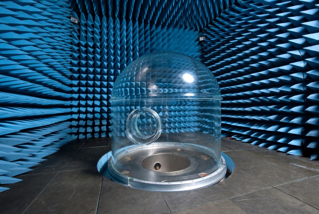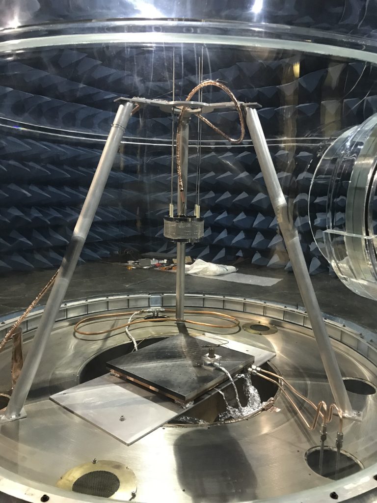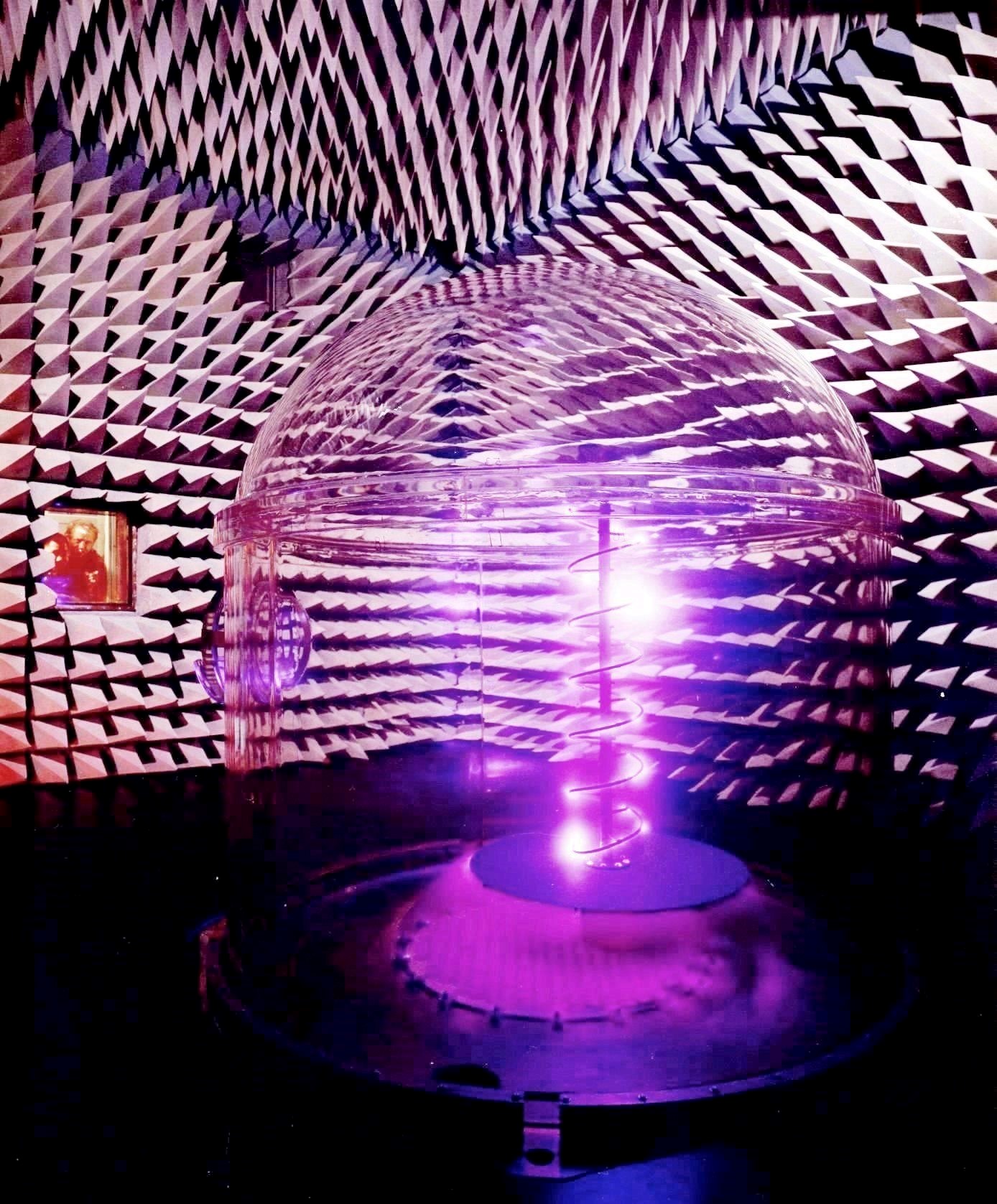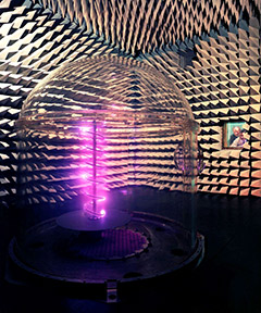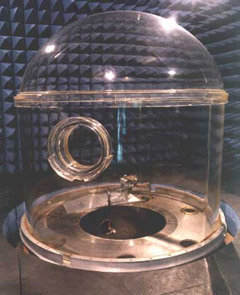 The large vacuum bell jar has an inside diameter of 72.13 inches, is 78.00 inches high at the center, and is made of 1.250 inches thick acrylic plastic that is both RF and optically transparent. The entire facility is enclosed in an RF shielded room, including a control room and a 15 ft x 15 ft RF anechoic chamber around the bell jar.