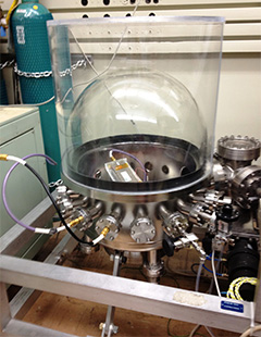 The MESA manages and maintains a world class high power test facility. The facility includes a large 1.8 m transparent bell jar vacuum chamber in which large microwave antennas can be tested to simulate conditions of space, high altitude, and in atmospheric conditions on non-Earth planets such as Mars. The MESA also maintains a separate high power test facility which includes a small vacuum chamber for testing smaller, non-radiating microwave components. JPL has trained technical staff members who can develop a test plan, setup the test equipment, work with customers to make proper interface connections with their hardware, run the test in accordance with a test procedure that has been customized to meet the requirements of the test in question, and provide the data and formal test report that supports flight hardware documentation requirements.