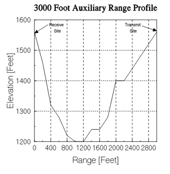 This range is similar to the 3000 Foot Range described elsewhere and shares the same transmit site with it. The receive end is located on a movable rail cart having an elevation over azimuth positioner in front of the shelter for measurement equipment and personnel. This range has been used for precision pattern measurements up to 94 GHz.