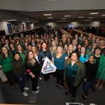 Astronauts and astronaut candidates from NASA and the Canadian Space Agency pose for a photograph in front of NASA’s Artemis I Space Launch System and Orion spacecraft atop the mobile launcher on the pad at Launch Complex 39B on Aug. 28, 2022.