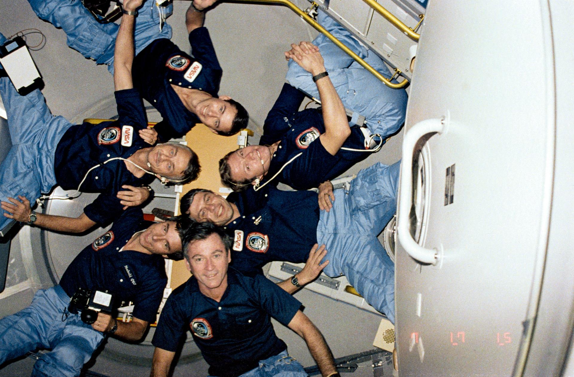This flight carried first Spacelab mission and first astronaut to represent the European Space Agency (ESA), Ulf Merbold of Germany. ESA and NASA jointly sponsored the Spacelab-1 and conducted investigations which demonstrated the capability for advanced research in space. Spacelab is an orbital laboratory and contains an observations platform composed of cylindrical pressurized modules and U-shaped unpressurized pallets which remain in the orbiter’s cargo bay during flight. Altogether 73 separate investigations were carried out in astronomy and physics, atmospheric physics, Earth observations, life sciences, materials sciences, space plasma physics and technology. This was the first time six persons were carried into space on a single vehicle.
