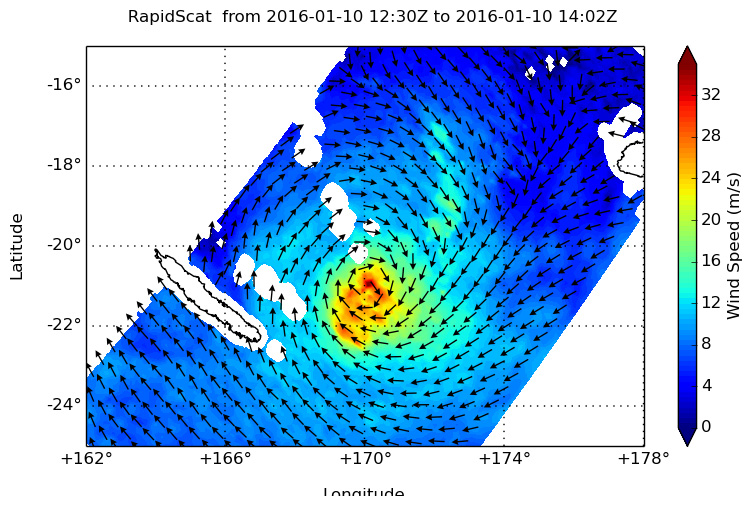 NOAA’s GOES-West satellite and NASA’s RapidScat instrument provided a look at Tropical Cyclone Ula after it became extra-tropical north of New Zealand.