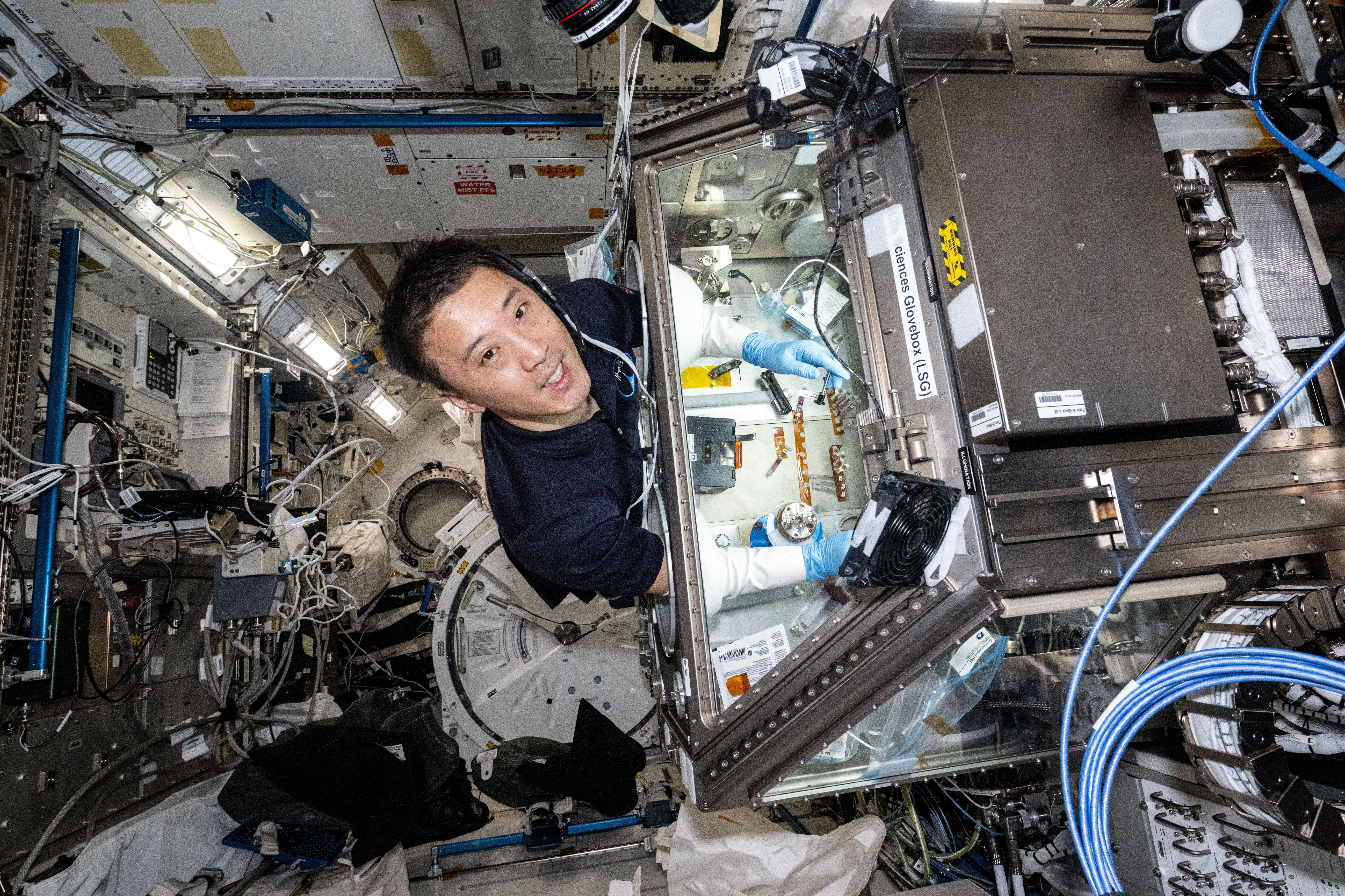NASA astronaut and Expedition 73 Flight Engineer Jonny Kim swaps hardware that promotes physical science and crystalization research inside the Advanced Space Experiment Processor-4 (ADSEP-4) aboard the International Space Station. The ADSEP-4 is supporting a technology demonstration potentially enabling the synthesis of medications during deep space missions and improving the pharmaceutical industry on Earth.