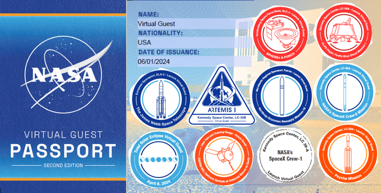 Since 2020, NASA has invited you, the public, to be virtual guests at launches and milestone events. As a virtual guest, you have access to curated resources, schedule changes, and mission specific information delivered straight to your inbox. Following each activity, guests are sent a stamp for their virtual guest passport! All resources, participation, and registration are FREE. Select your opportunities. Join us!