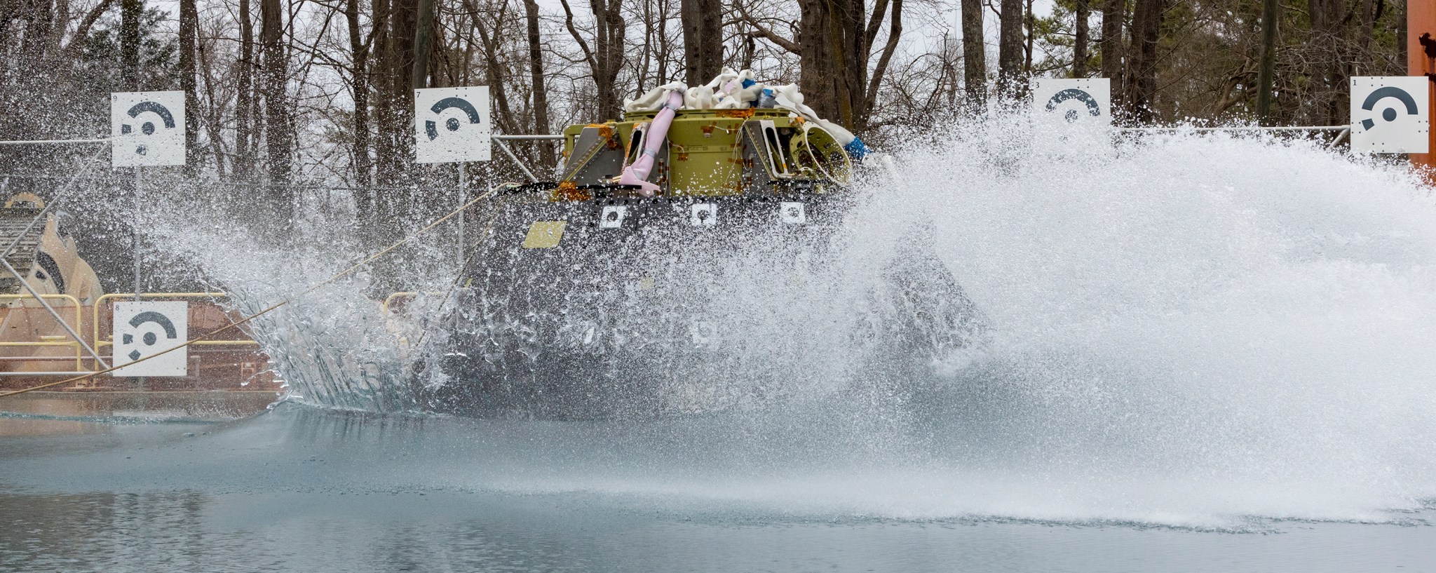Engineers will drop a 14,000-pound test version of the Orion spacecraft into the Hydro Impact Basin at NASA’s Langley Research Center’s Landing and Impact Research Facility in Hampton, Virginia, at 1:45 p.m. EDT Tuesday, April 6.
