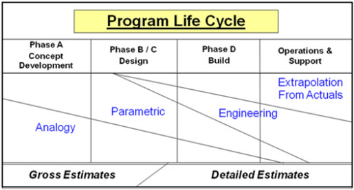 Cost Estimating and Analysis includes a wide range of activities to support NASA missions, from the development of estimates for competitive proposals to the development of independent estimates to joint confidence level analysis that can be used to set baselines or approve programs and projects for advancement into the next life cycle phase.