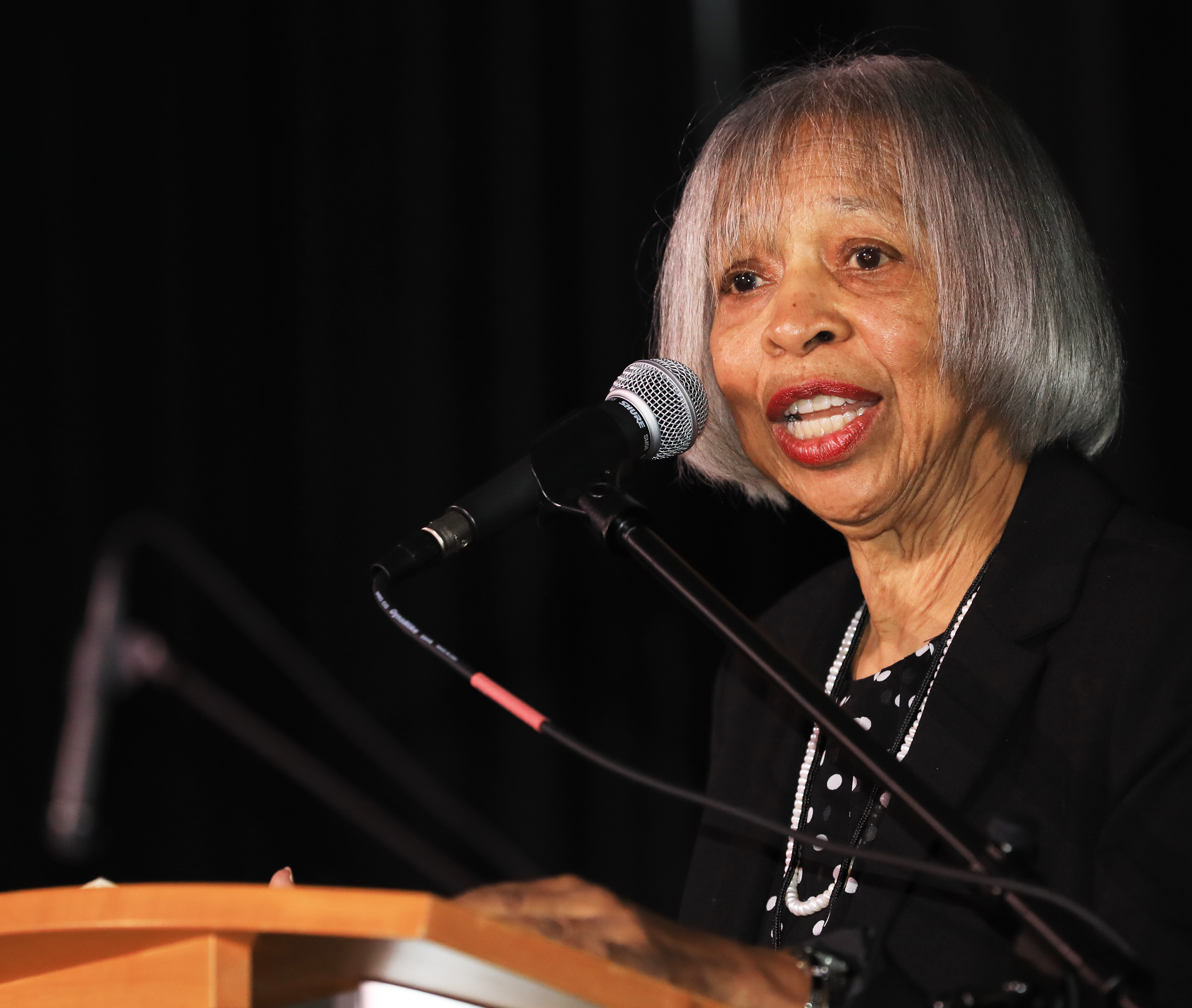 Also participating in the ceremony were Eileen Collins, chair of the AMF board of directors and a former NASA astronaut, Bob Crippen, former Kennedy center director and NASA astronaut, and physicist Herman White, Ph.D. Also speaking was James Abrahamson, a retired U.S. Air Force lieutenant general who also was a Manned Orbiting Laboratory (MOL) astronaut. He later was associate administrator of NASA and served as director of the Strategic Defense Initiative. A presentation to the AMF was made from Lawrence’s fraternity, Omega Psi Phi, by the organization’s grand basileus, Antonio “Tony” Knox.
