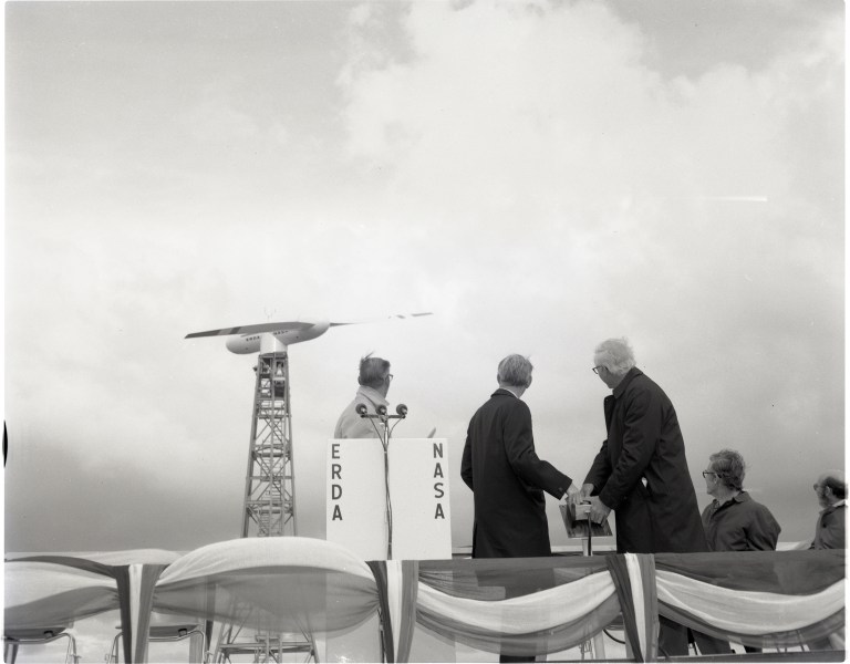 With the nation’s increased awareness of environmental issues in the early 1970s, Lundin was able to levy the center’s aerospace experience to terrestrial issues, including clean energy, alternative propulsion, and pollution monitoring. Lundin partnered with the Department of Energy, the National Oceanic and Atmospheric Administration, the Environmental Protection Agency, and Federal Aviation Administration during this period. This resulted in an array of new endeavors, such as the development of large wind turbines, mapping ice cover on the Great Lakes, exploring methods for clean burning of coal, creating batteries for electric vehicles, and establishing solar villages.
