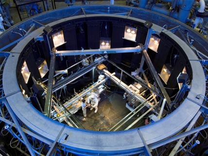 NASA Johnson Space Center’s Thermal Vacuum Chamber B is used for crewed space operations testing in vacuum. Space-suited astronauts practice a variety of tasks in a simulated low-gravity environment, enabled by a traversing monorail from which one suited crewmember at a time can be suspended. The chamber also has dual crew locks to provide easy access to test articles and a means of transporting crewmembers to and from the chamber.
