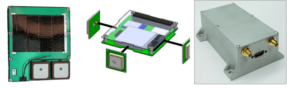 The most comprehensive (but also potentially the most complex and SWaP-intensive) option involves equipping a small satellite with an independent positioning, navigation, and timing (PNT) receiver and independent radio capable of transmitting data to an independent communications provider. An example technology is the Black Box system (Figure 12.1), described by NearSpace Launch, Inc., in a recent conference paper (18). This system comes in several form factors for mounting internally or externally to a small satellite or CubeSat. The patch antenna shown in the first image is approximately 10 cm by 8 cm and can weigh as little as 22 grams; larger systems such as the one shown in the third image of Figure 12.1 have flown and are considered TRL 9. Another example often used for CubeSats is the NovAtel OEM7700. JAXA offers a strap-on tracking device called mini-Mt. Fuji; they can provide sensor tracking, or operators can track it themselves. These systems combine a low-power GPS receiver with a low-power radio capable of communicating with a low-Earth orbit communication provider (in the case of Black Box, the Iridium network) and operate independently from the spacecraft’s regular command and telemetry links. Externally mounted versions often include solar cells for independent power generation. A Black Box system is currently flying on Spaceflight Sherpa-FX orbital transfer vehicle, launched on January 24, 2021, and is returning GPS fixes to the developer. The GPS fixes were analyzed, and reports were presented at the October 2021 and October 2022 International Astronautical Congress (40)(41). As a further service, the vendor (NearSpace) can generate a low- or high-precision ephemeris for one’s satellite and furnish this to the O/O, who can then submit it to a CA screening authority.