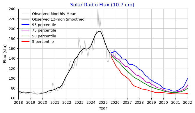 Radio Flux (10.7 cm) Extended Forecast: Plot | Table (95 percentile) | Table (75 percentile)