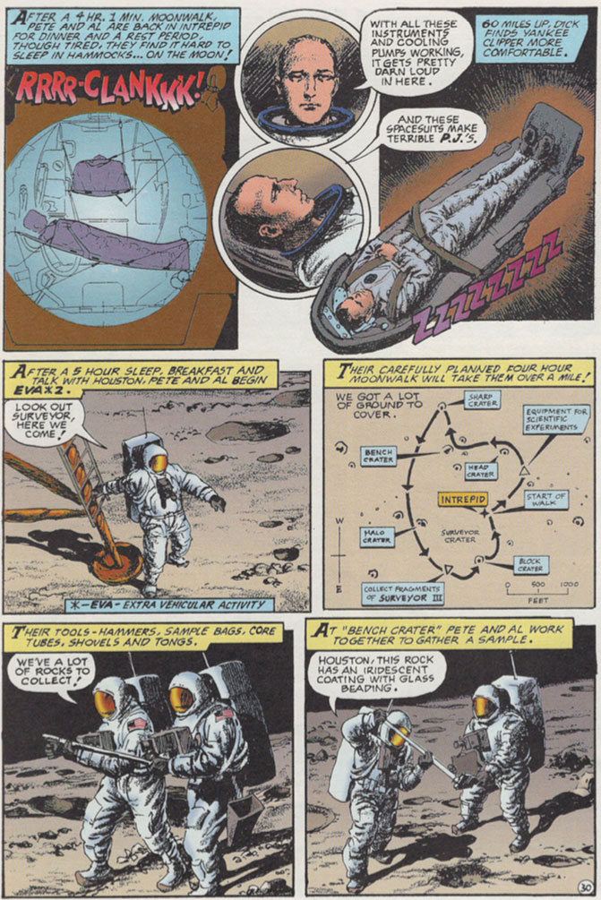 During their second moonwalk, Conrad and Bean reached the Surveyor 3 lander — one of the robotic missions that explored the Moon in advance of astronauts. They not only collected images and samples of the lunar surface surrounding the spacecraft, but cut, sawed and hacked parts off the three-legged spacecraft, including Surveyor’s TV camera and its surface-soil sampling scoop.