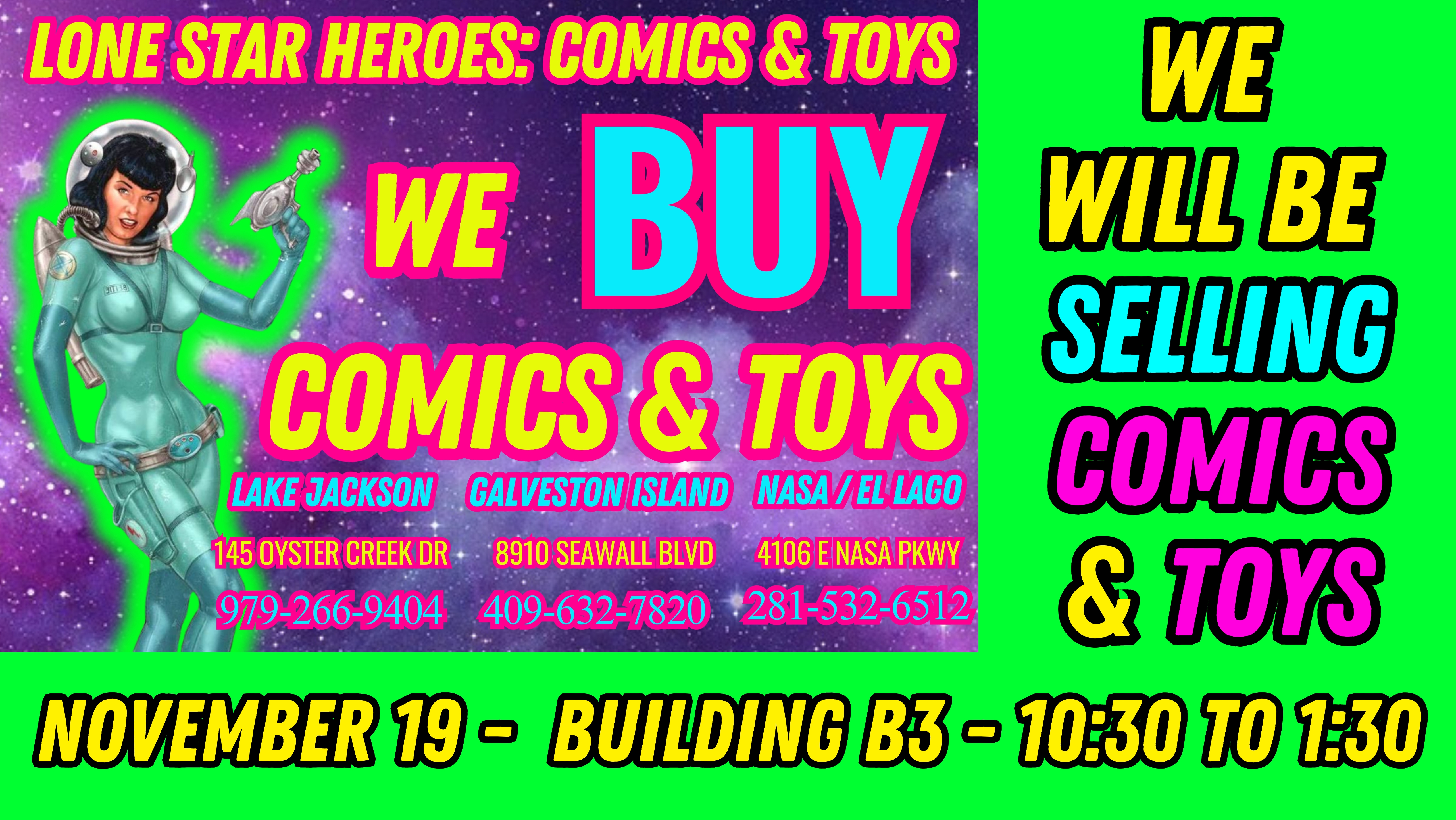 Navigate StarportStarportStarport HomeAbout StarportConnect with UsEmployment Opportunities Rules & RegulationsStarport HappeningsStarport Partners & SponsorshipsShopNASAGiftshopsShopNASA.comFood ServicesCalendarFood Truck ScheduleB3 CafeB11 CafeLiftoff Cafe @ B4SCateringMicro MarketsVending MachinesFacility ReservationsSee AllConference SpacesFieldsGymnasiumPavilionsRental PricingReservation Request FormRules & GuidelinesFitnessAll Fitness ServicesFacilitiesGroup ExerciseMembershipsPersonal TrainingPremium Classes & WorkshopsWellnessAll Wellness ProgramsFinancial WellnessNutrition CoachingMassage TherapyStretch TherapyRecreational ProgramsAll ProgramsCloggingCountry & Western DanceCreative Writing GuitarIrish DanceKaratePhotography PianoSalsa / Latin DanceVideographyLeague SportsEAA ScheduleSpecial EventsAliens vs Astronauts 5KBreakfast with SantaCelebration Events Chili CookoffGolf TournamentNASA Sports EventsPop-Up Shops at JSC Reconnection HoursRodeoDiscount ProgramDiscount ProgramDiscount TicketsAdditional ServicesHoney Baked HamsMemorial TreesNASA ClubsScholarship ProgramStarport DonationsSwapShop Pop Up Events Lone Star Heroes: Comics & Toys Wednesday, November 19, 2025 10:30am to 1:30pm Building 3 Keep Exploring Discover More Topics From Starport Honey Baked Ham Program Discount Program JSC Gift Shops B3 Coffee Bar and Café