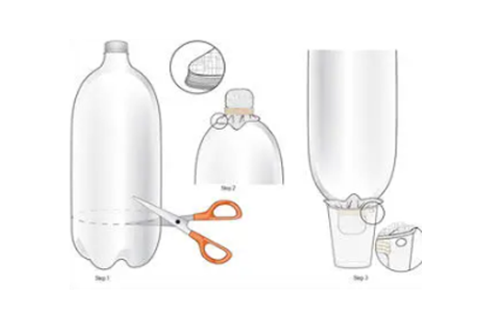 - Cut off the bottom of the 2-liter bottle, just above the curve – See this example diagram