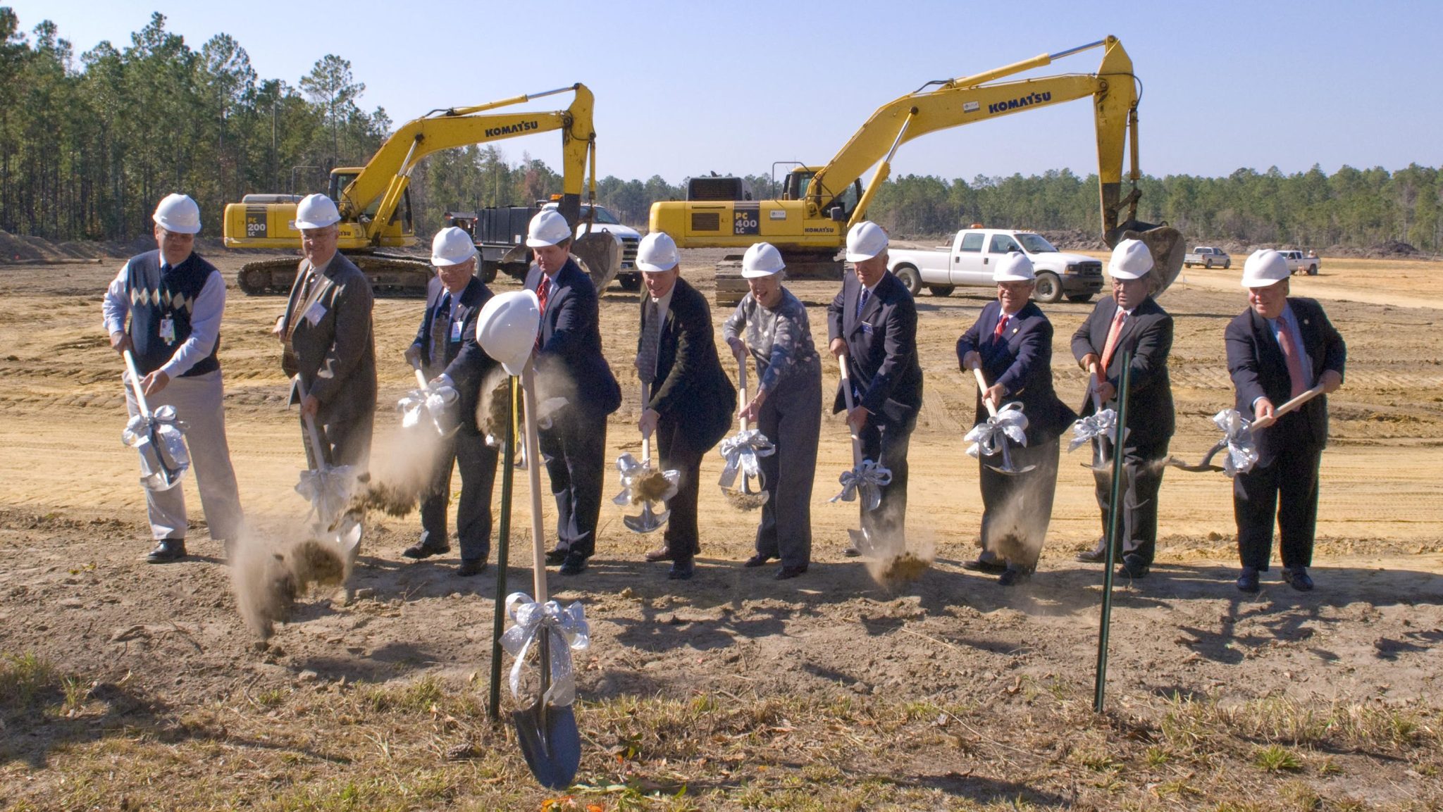 Groundbreaking guests included, among others, INFINITY board member and Apollo 13 astronaut Fred Haise (third from left) and then-Stennis Director Gene Goldman (fourth from left).