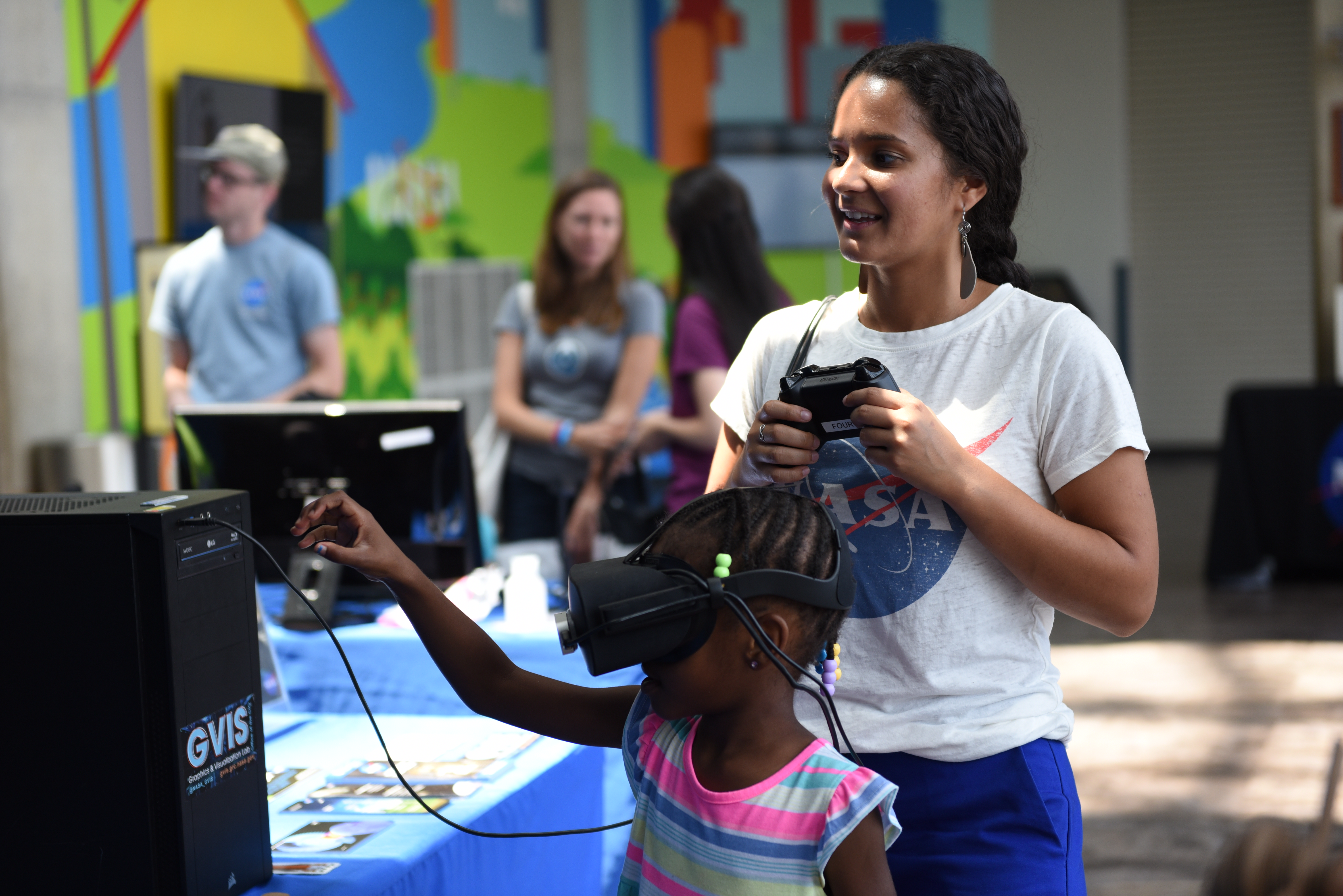 Designing user interfaces for these visualization tools is an area Sophia Hamed-Ramos most enjoys about her job with GVIS. Getting to participate in educational outreach – such as demonstrating virtual reality to curious kids – is another.