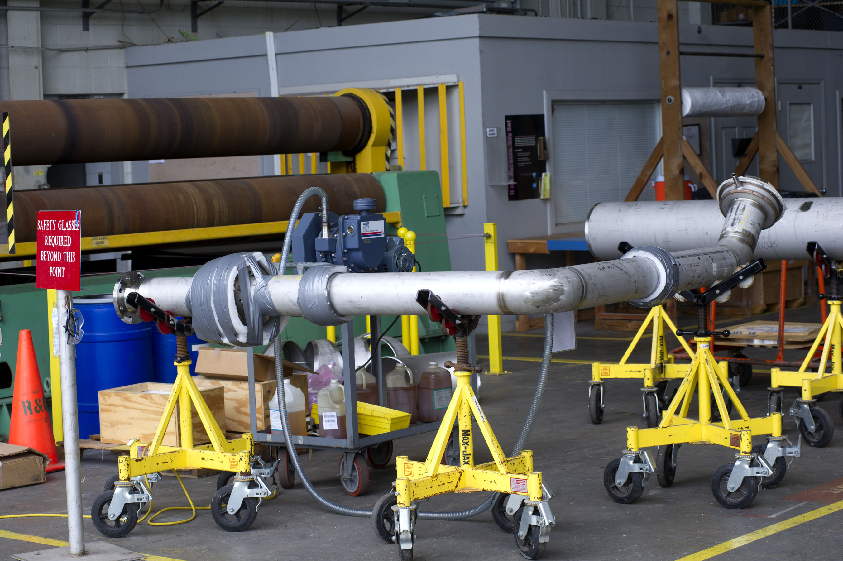 The RS-25 testing project was accelerated by a few months, shortening the time for preparation work on the A-1 test stand. The piping now being fabricated by Jacobs Technology crews at Stennis is expected to be completed and installed on the stand by the end of the year.