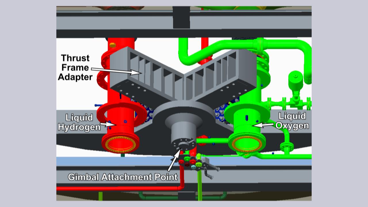 Engineers had to take into account new engine performance factors to determine such things as the flow rate of cryogenic fuels needed in the lines and the pressures under which they must operate. In terms of simple geometry, they also had to make sure piping connections were located properly and identify how and where to install supports to hold the piping in place.