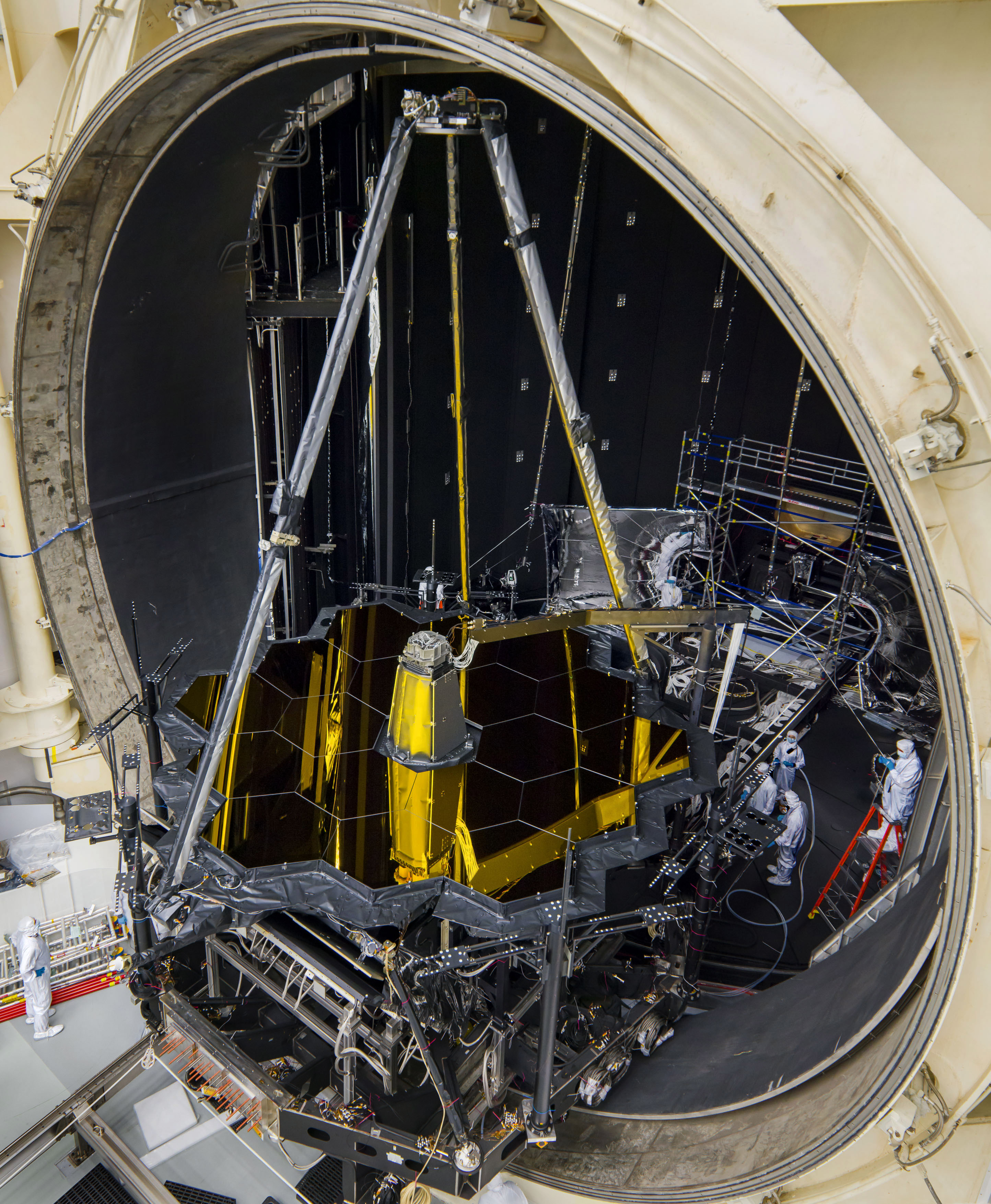 NASA’s James Webb Space Telescope was placed in Johnson Space Center’s historic Chamber A on June 20, 2017, to prepare for its final three months of testing in a cryogenic vacuum that mimics temperatures in space.