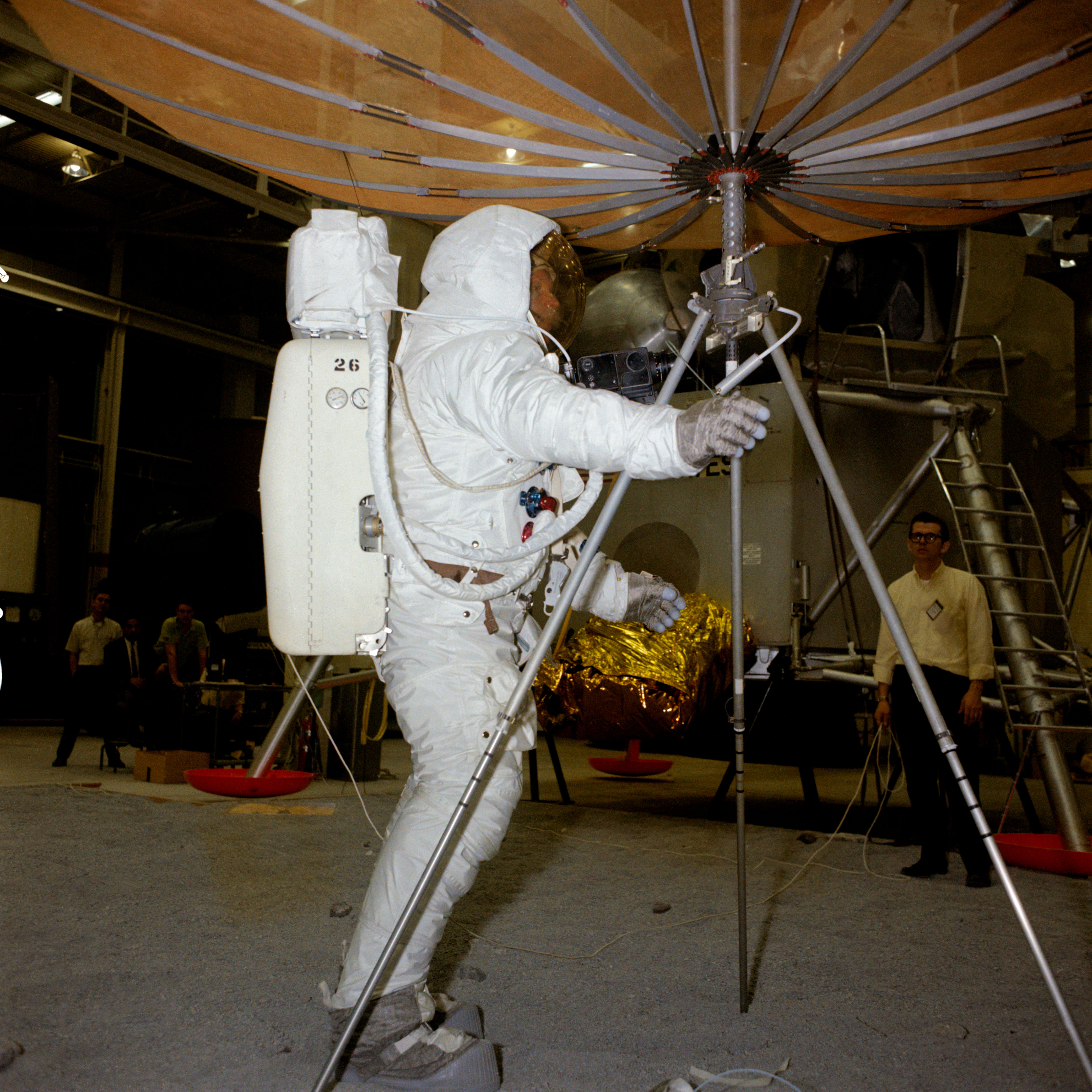Many of the scans of photos taken during the missions were done from the original film. These scans are being done by NASA Johnson, with some post-processing by Kipp Teague. The film is scanned at 4096 x 4096 pixels per image. (See a discussion from Arizona State University about the scanning process.) Kipp reduced each digital image to approximately 2350 x 2350 pixels (equivalent to 300 dpi) and did minor adjustments of levels to ensure that (1) brightly lit areas of lunar soil were neutral grey, (2) objects with known colors (such as the CDR stripes or the LCRU blankets) looked right, and (3) information in bright or dark areas was not lost. These images from original film are indicated by the notation 'OF300' in the image description. In each case, a 900 x 900 pixel version is also provided.