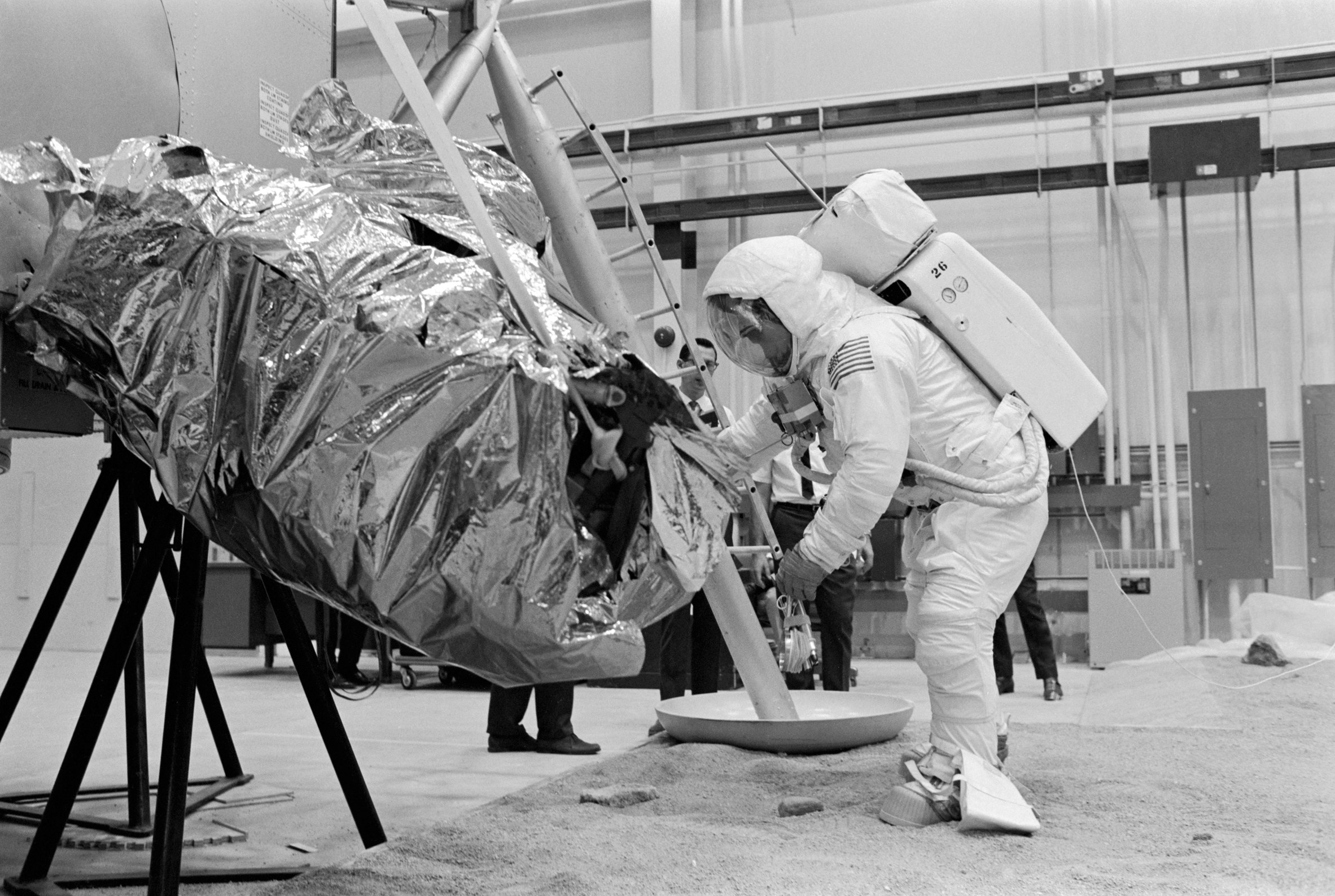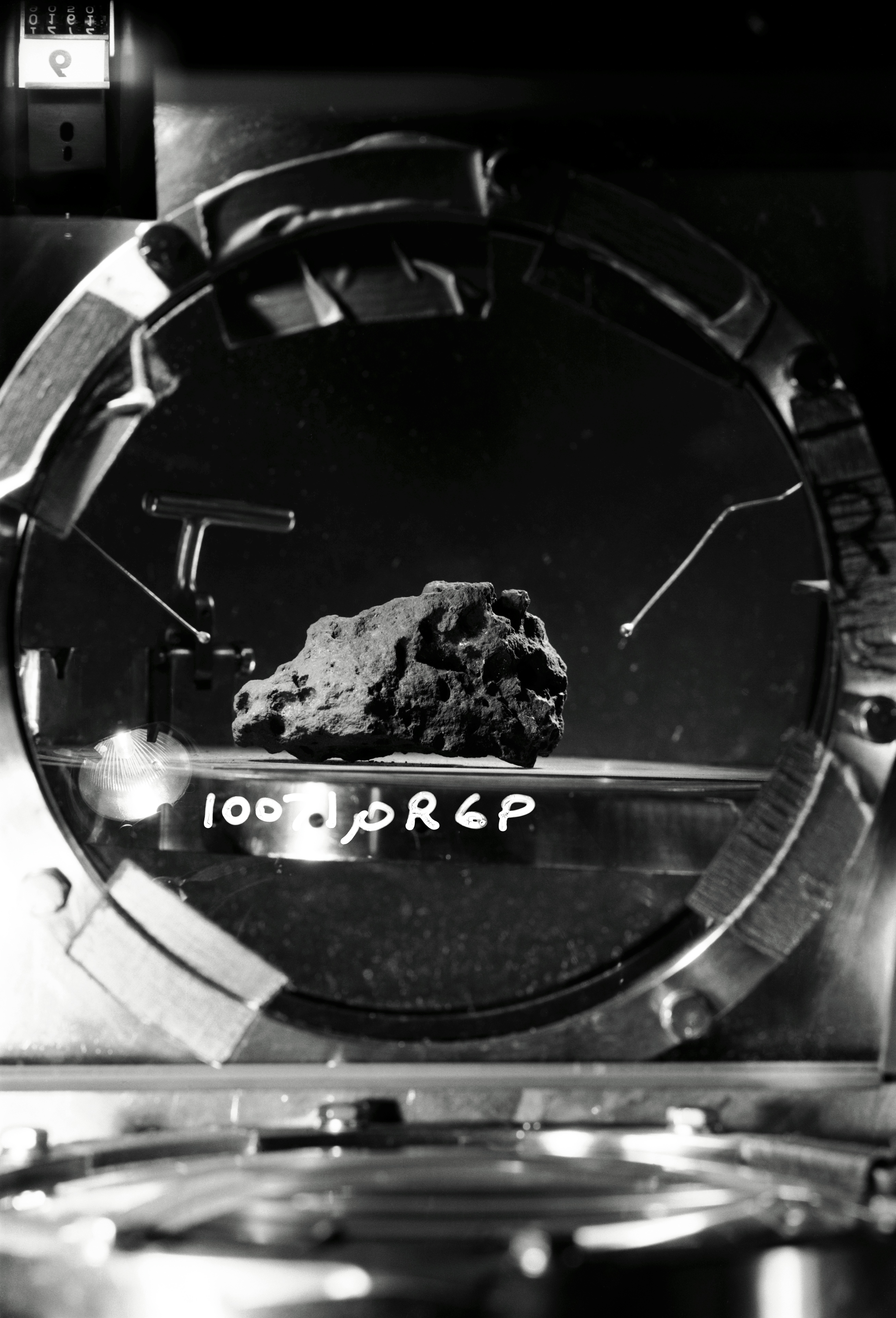 Apollo 11 sample 10071,0 is a 190-gram piece of angular, medium-light-grey, fine-grained basalt collected by Neil after 1112009 and returned to Earth in ALSRC No. 1004 (Documented Sample Container. In 2006, a portion of the sample was presented in Neil's honor to the Cincinnati Museum Center on the occasion of his receipt of NASA's Ambassador of Exploration Award. Scan courtesy Susan Erskin and Mike Gentry, NASA Johnson.S69-47297 ( 56k or 7.3Mb )