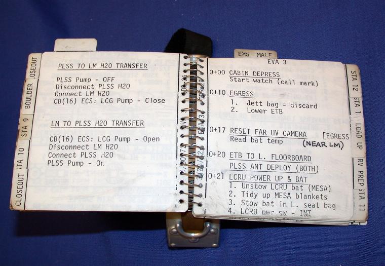 [John and Charlie have more or less changed places. Charlie is now standing down-Sun of John with the right side of his PLSS presented. John attaches SCB-4 to Charlie's PLSS. The top attachment seats easily and then John steps to his left to get behind Charlie and pulls out the bottom strap that has been hanging down, presumably from the tool harness. See Figure 14-62 in the Apollo 16 Mission Report.]165:59:33 Duke: Oh, we left MESA heater op(en)...(correcting himself) in (meaning "closed"). I never did get that.[Charlie glances at his checklist which, apparently, jogs his memory, even though there is no mention of the following item in his cuff checklist.]