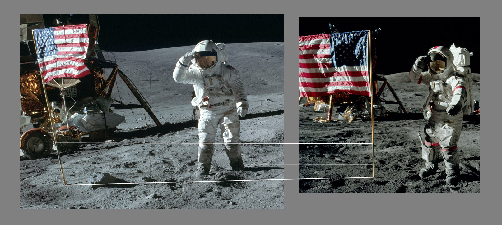 between the Apollo 16 and 17 flags, as deployed, indicates that