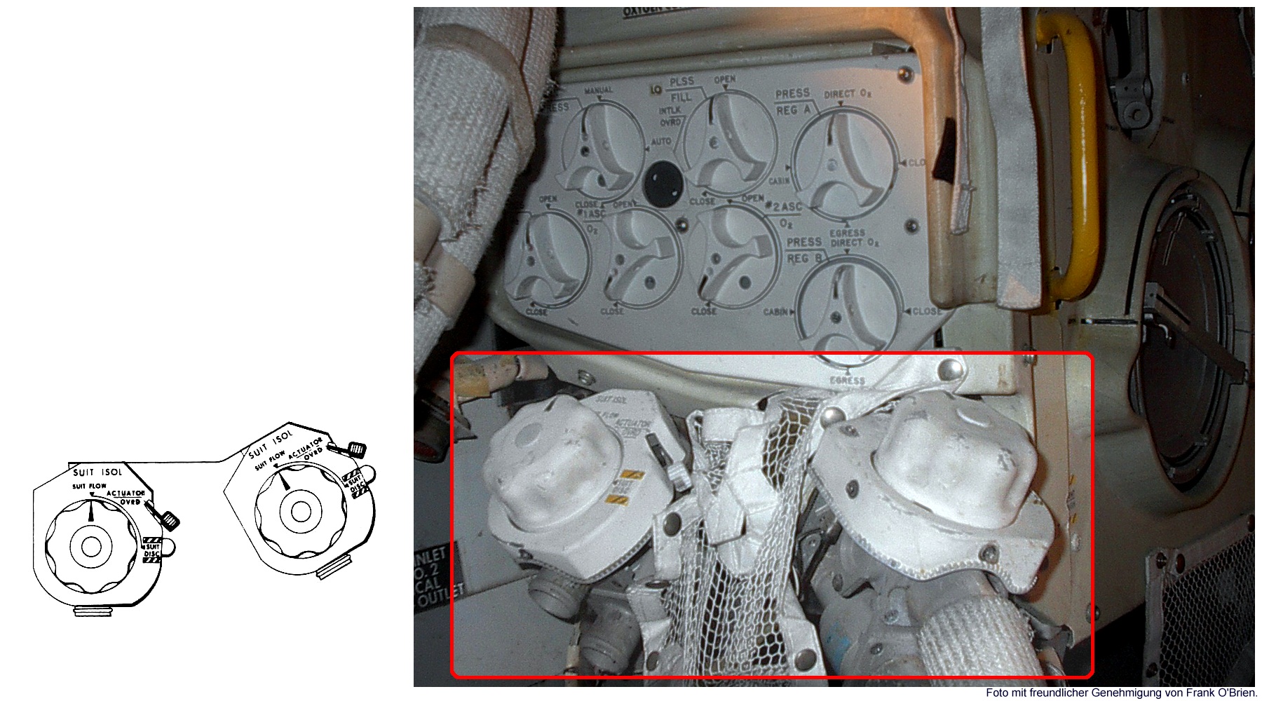Jim denkt hier kurz, er hätte zuerst den Sicherungsschalter Kabinendruckwiederherstellung auf Paneel 16 schließen müssen, bevor er das Ventil Kabinendruckwiederherstellung umstellt. Es passierte selten, aber wenn den Apollo-Besatzungen bei den Verfahrensweisen tatsächlich ein Fehler unterlief, dann meistens, weil sich die Astronauten eher auf ihr Gedächtnis verließen, anstatt in der Checkliste zu lesen. Ein Beispiel dafür sind die Probleme von Pete Conrad und Al Bean während der Vorbereitung auf EVA-1