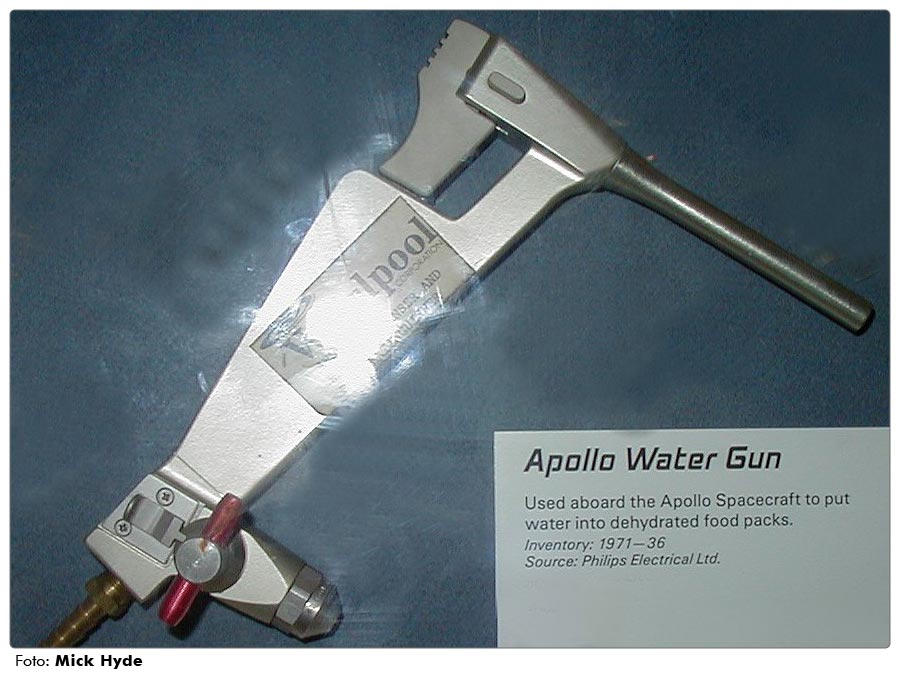 ECSEnvironmental Control System-Abteil) stand Jim nach hinten gewandt. Um das Dekompressionsventil an der vorderen Luke zu öffnen, muss er sich erst umdrehen.