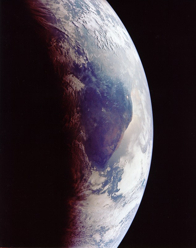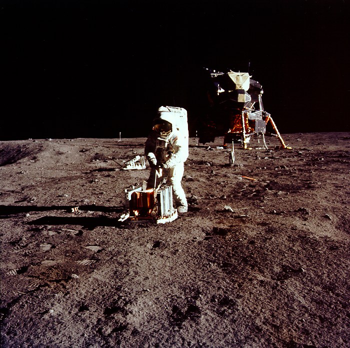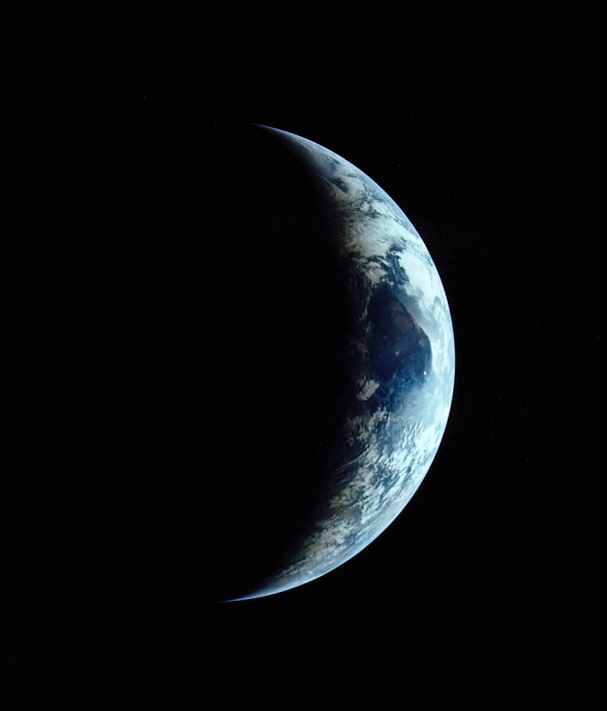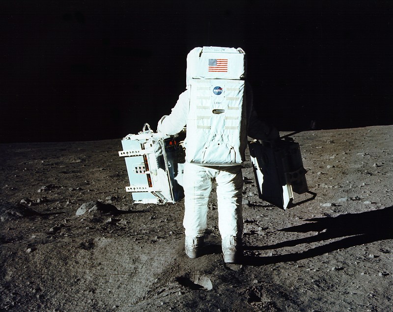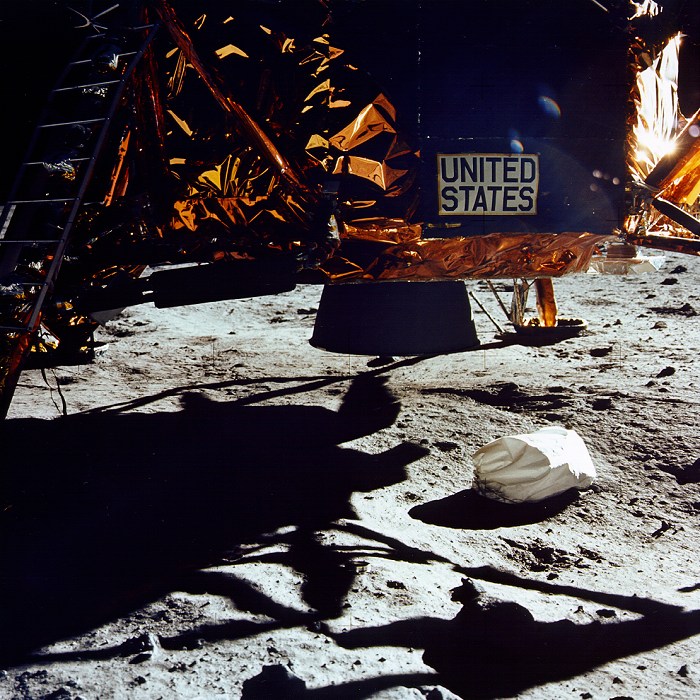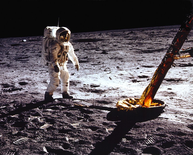 Apollo 11 astronauts, still in their quarantine van, are greeted by